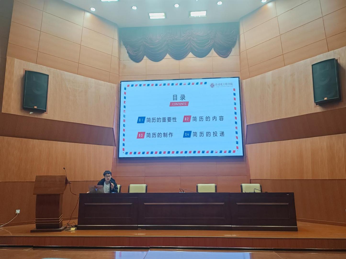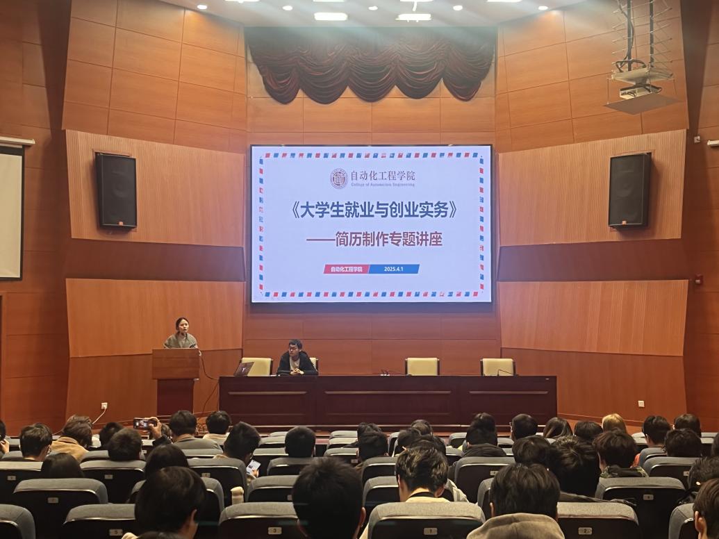 为帮助学生掌握简历制作核心技巧,提升学生就业竞争力,树立就业信心,自动化工程学院于2025年4月1日在杨浦校区行政中心1楼报告厅召开《大学生就业与创业实务》课程简历制作专题讲座。讲座由实习辅导员薛楚恒主讲,2022级辅导员孙怀芹、苏扬出席,全体2022级本科生参加。讲座由孙怀芹主持。
