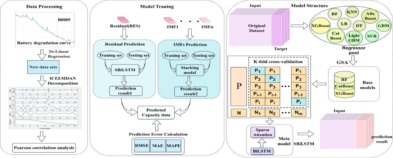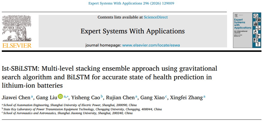 在《Expert Systems with Applications》上发表的论文“Ist-SBiLSTM: Multi-level stacking ensemble approach using gravitational search algorithm and BiLSTM for accurate state of health prediction in lithium-ion batteries”(DOI: 10.1016/j.eswa.2025.129009)针对锂离子电池容量再生现象及健康状态预测问题,提出了一种基于自适应级联优化的多层混合预测方法 Ist-SBiLSTM,显著提高了预测准确性。