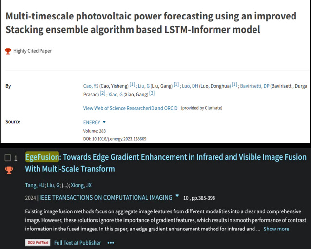 近期,我校自动化工程学院刘刚教授课题组在能源电力和AI算法领域取得了一系列显著成果,多篇论文在中科院 1 区 Top 期刊发表,包括 《Renewable Energy》(IF:9.1)、《Energy》(IF:9.4)、《Expert Systems with Applications》(IF:7.5)、《Engineering Applications of Artificial Intelligence》(IF:8.0),《Pattern Recognition》(IF:7.6)。其中,2篇论文被评为全球 ESI 前 1% 高被引论文,受到全球同行关注和引用,充分体现了团队的科研水平和国际学术影响力。