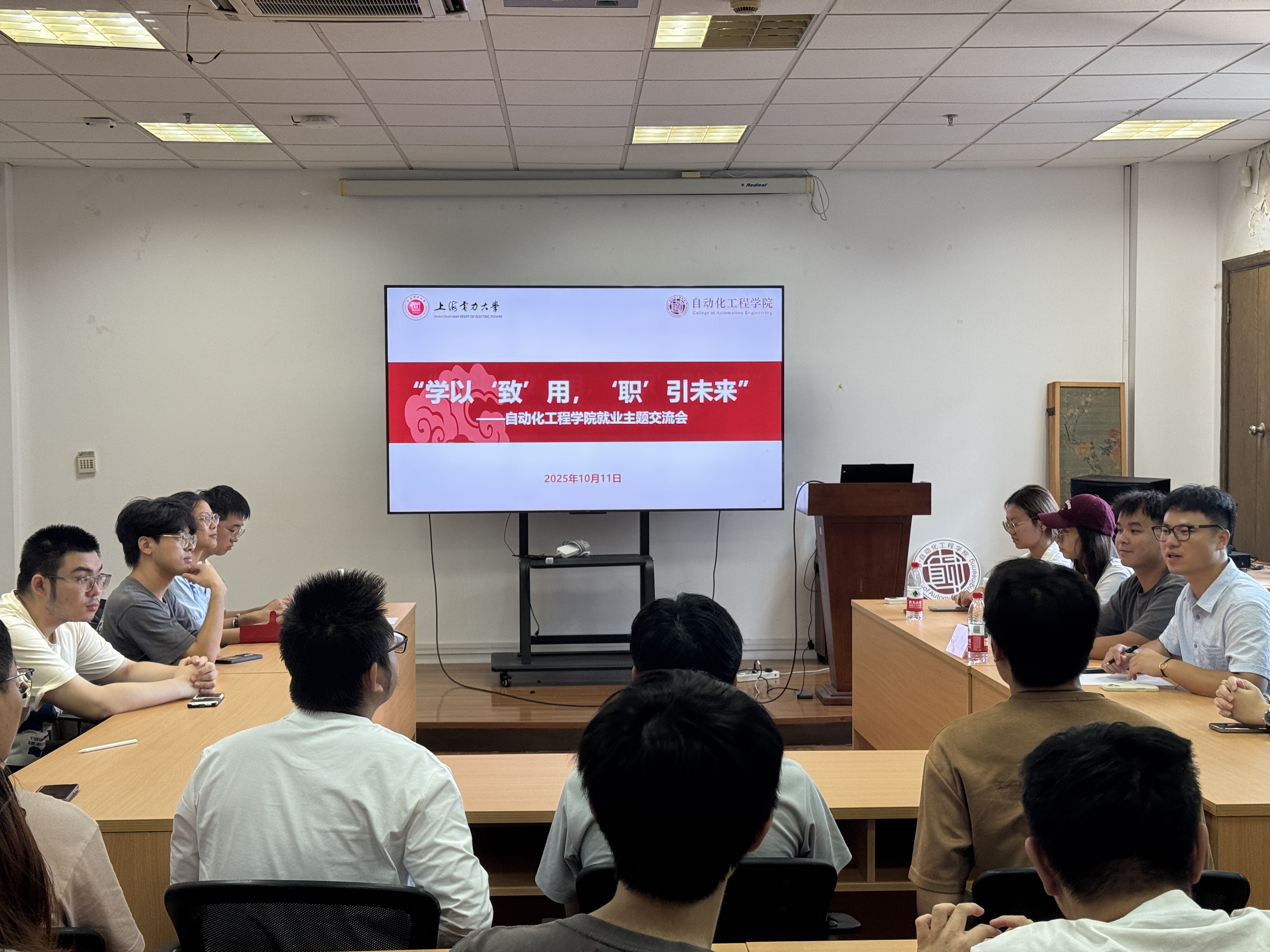 为深入贯彻党的二十大精神,落实党中央、国务院关于高校毕业生就业创业的决策部署,进一步宣传学校与国家电网有限公司开展的“订单培养”项目,引导毕业生到祖国和人民最需要的地方建功立业,自动化工程学院于2025年10月11日在致远楼304会议室组织开展就业主题分享座谈会。会议邀请学院优秀校友杨昌雷进行分享交流,活动由学院就业工作负责人陈炜主持。
