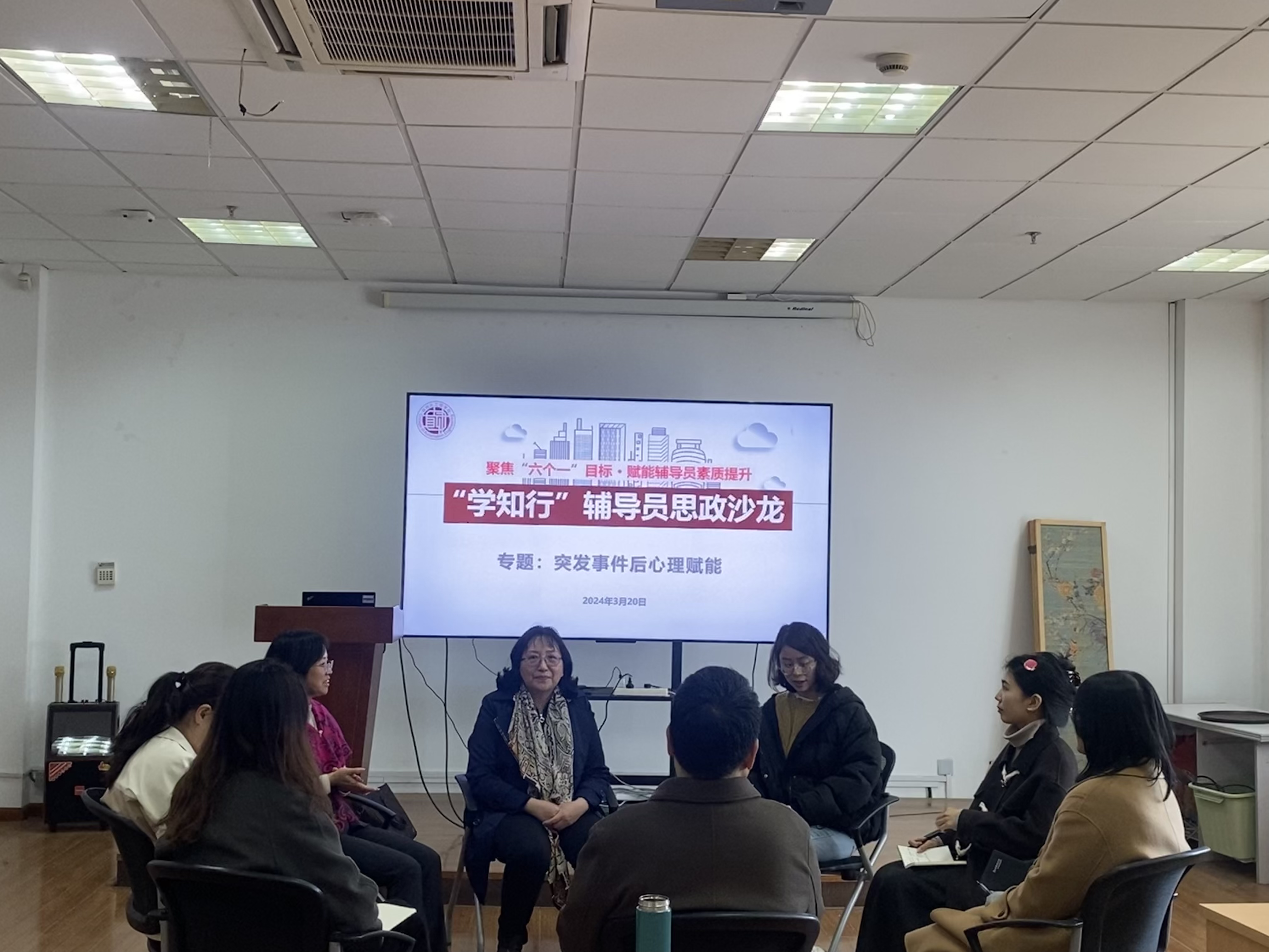 为进一步促进辅导员了解心理健康知识,科学缓解工作、生活中的心理压力,提升职业幸福感,自觉增强立德树人的荣誉感和责任感,营造良好的育人氛围。近日,自动化工程学院围绕“突发事件后心理专项”专题组织举办“学知行”辅导员思政沙龙活动,本次沙龙特邀心理教研室主任林臻副教授进行专题指导和交流。自动化工程学院党委副书记王佳丽、全体辅导员参加了本次活动。会议由王佳丽主持。