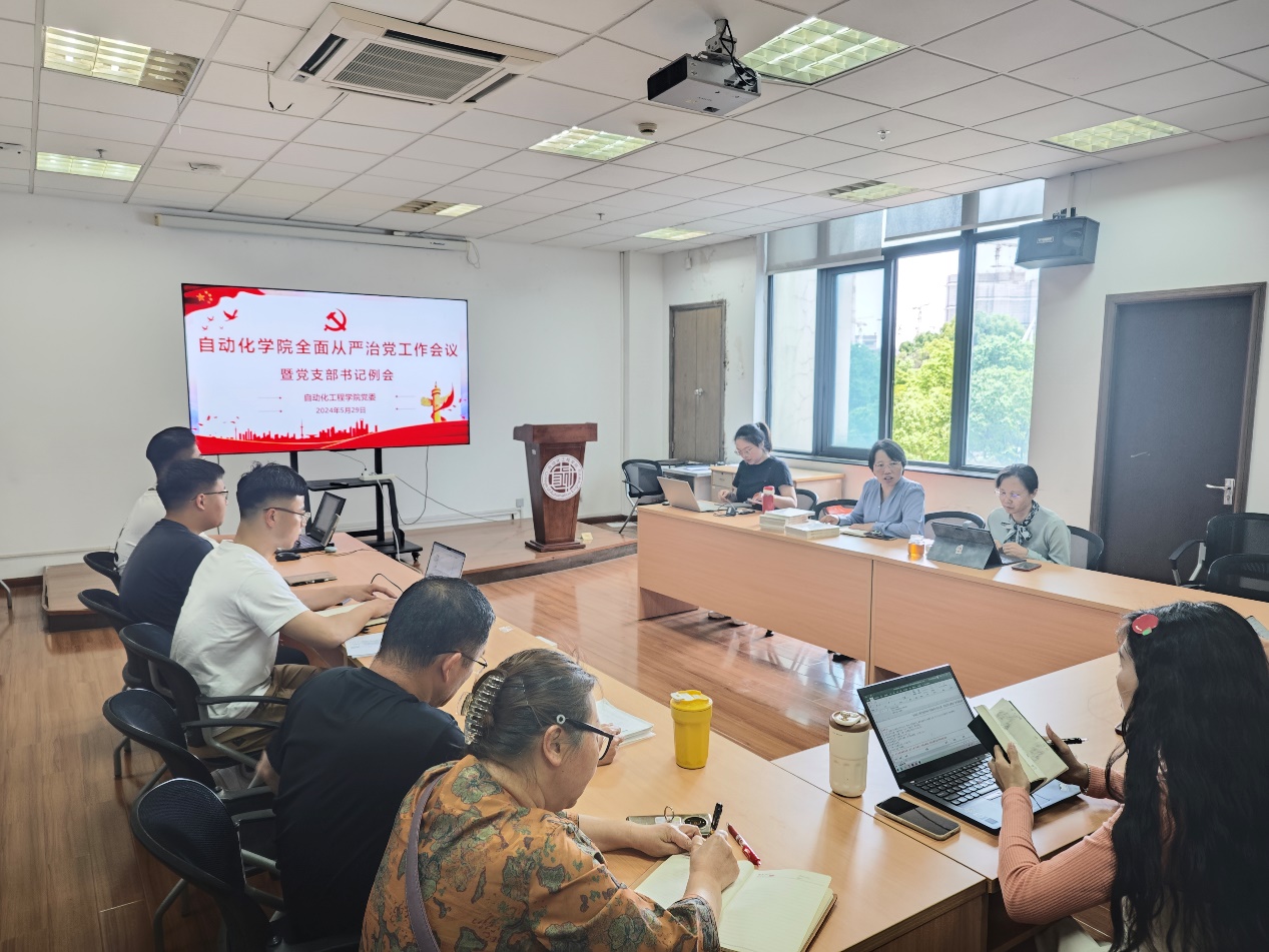 5月29日下午,自动化工程学院于杨浦校区致远楼304会议室召开全面从严治党工作会议暨五月份党支部书记例会。院党委书记刘莉、党委副书记王佳丽、专职组织员许晓天和全体党支部书记参会,本次会议由刘莉主持。