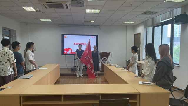 王佳丽向理论宣讲团团长黄徐颖授旗并进行出征动员。她对理论宣讲团的付出和成果表示肯定,指出宣讲团要此次入选2024年全国大学生西柏坡精神宣讲为契机,以暑期社会实践为载体,深入社区、中小学、企业等开展全方位、多渠道、有特色、有内涵的主题宣讲活动,推动党的创新理论和红色精神入耳、入脑、入心、入行。